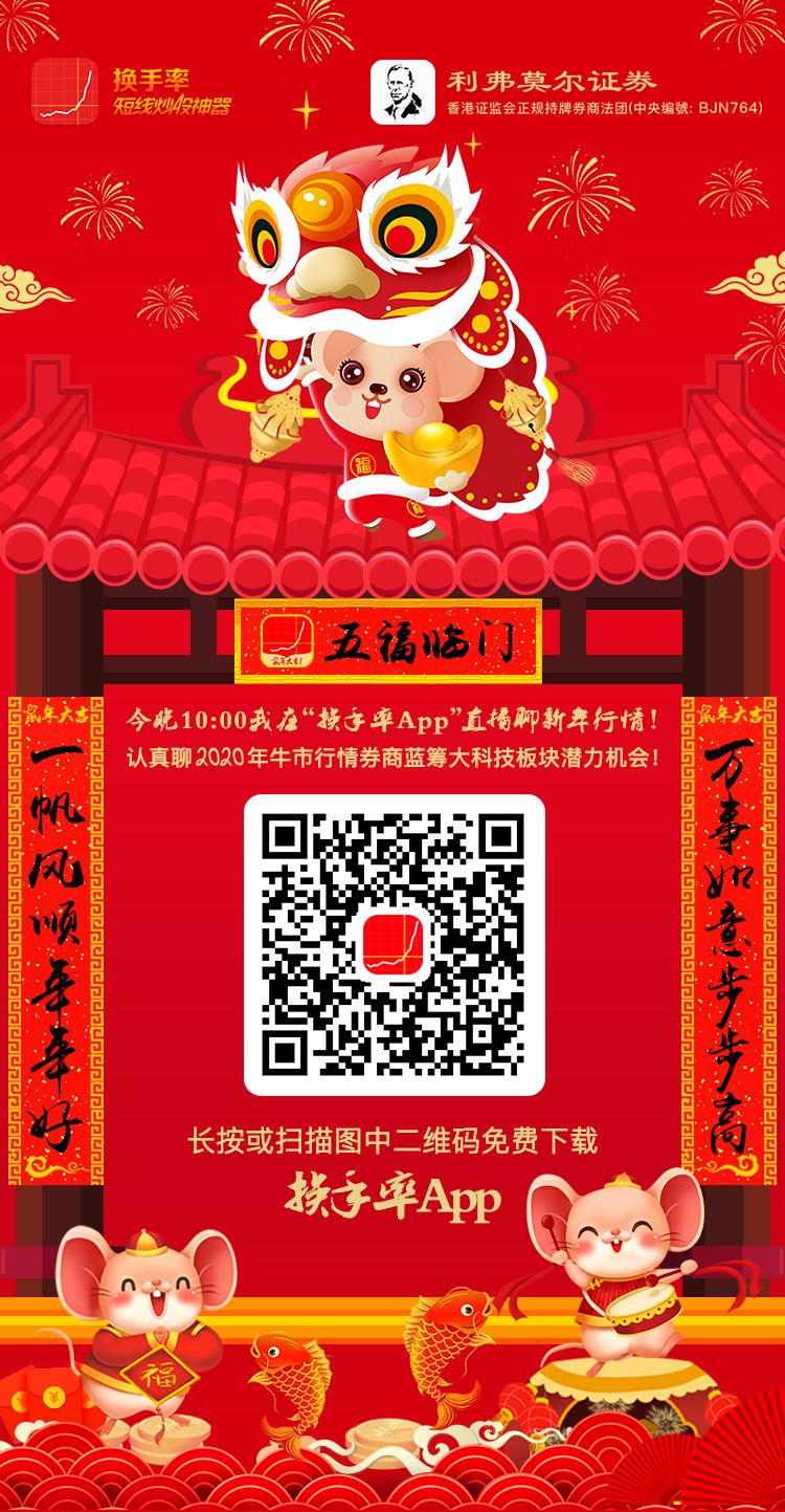 **点击左下角【阅读原文】,免费下载“换手率App”,在自媒体关注“股社区”,今晚10点开始直播,我和老铁们认认真真聊1小时关于2020年新年大牛市行情机会!****2020恭喜发财!**阖家幸福